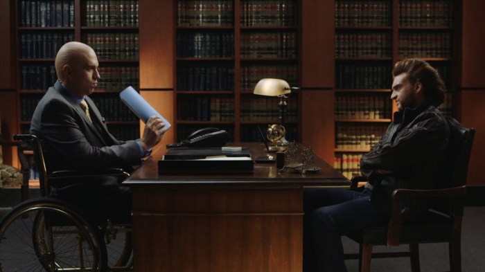 Screengabs from the Comic-Con Trailer. He looks angry there too!
