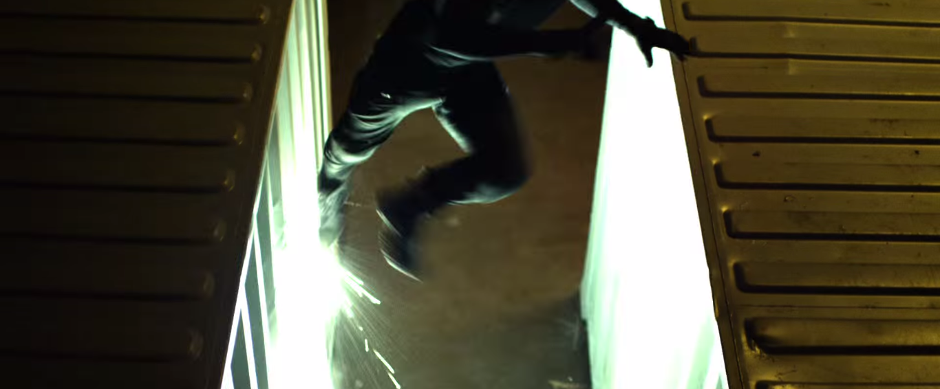 Doesn’t this all look familiar? Hunting bad guys around shipping containers. Disappearing in the shadows. Only, NOW WITH PARKOUR!